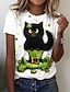 St. Patrick's Day St. Patricks Day Damen T Shirt Druck Blatt Katze St. Patricks Day Kurzarm Rundhals Normale Oberteile Täglich Wochenende Weiß