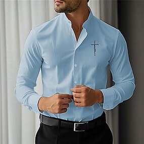 Herren Bedruckte Hemden Glaube Straße Büro-Outfit Blau Weiß Rosa Langarm Stehkragen Frühling & Sommer Bekleidung Druck