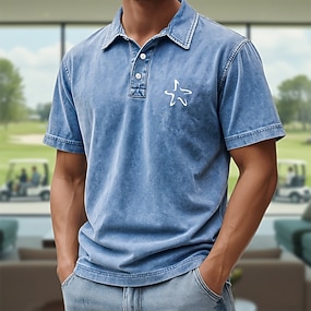 Herren Seestern 100% Baumwolle Poloshirts Acid-Wash-Shirt Kurzarm Polo-Shirts Hemden mit Kragen Hawaiianisch Lässig Outdoor Ferien Urlaubskleidung 3D-Druck Knöpfe Frühling & Sommer Blau Purpur
