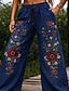 Damen Weites Bein Chinos Hosen Hose Baggy-Hosen Urlaub Ethnisch Lässig Volle Länge Hohe Taille Blume Elastischer Bund Baggy Druck Komfort Atmungsaktivität Weich Mikroelastisch Urlaub Alltagskleidung