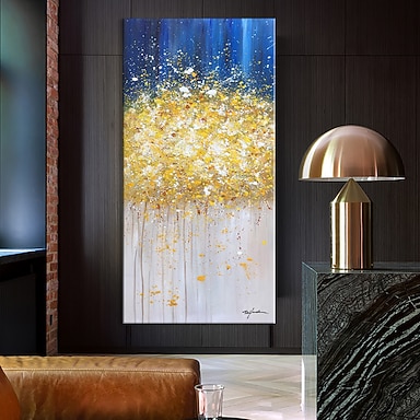 Handgefertigtes Ölgemälde auf Leinwand, Wandkunst, Dekoration, moderne abstrakte goldene Blütenblätter für Wohnkultur, gerolltes, rahmenloses, ungedehntes Gemälde
