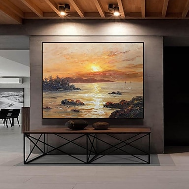 Ölgemälde handgefertigt, handgemalt, Wandkunst, abstrakt, Dämmerung, Meereslandschaft, Landschaft, Heimdekoration, dcor, gerollte Leinwand, kein Rahmen, ungedehnt