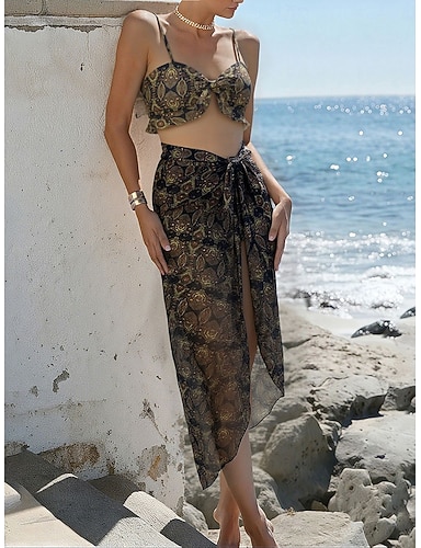 Damen Badeanzug Bikini Dreiteilig Slips Bademode Gerafft Urlaub Strandbekleidung Blumen Grafik V Ausschnitt Ärmellos Badeanzüge