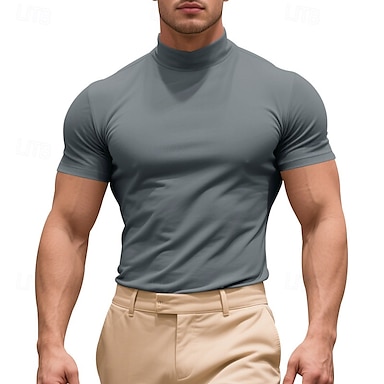 Herren T Shirt Rollkragenhemd Kurzarm Rollkragen Sommer Frühling Ganzjahres Einfach Mode Klassisch Lässig Basic Urlaub Straße Lässig Schwarz Weiß Kaki Top T-Shirt für Herren