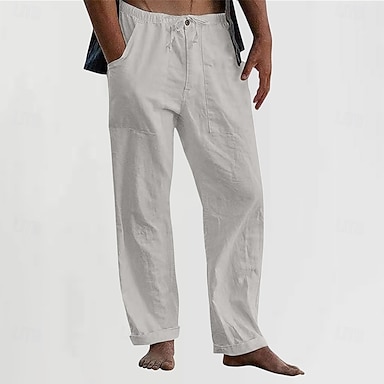 Herren Leinenhosen Hose Sommerhose Strandhose Tasche Kordelzug Elastischer Bund Einfach Komfort Atmungsaktiv Urlaub Täglich Ferien Hawaiianisch Boho Meerblau Kurkuma
