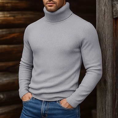 Herren Pullover Gerippt Stricken Normale Oberteile Gestrickt Minimalistisch Einfach Rollkragen Strickware Zeitgenössisch Lässig Alltagskleidung Bekleidung Herbst Winter Schwarz Weiß M L XL