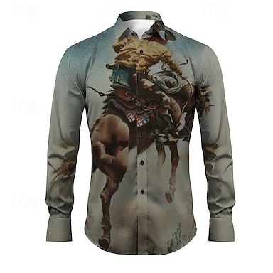 Kentucky Derby Herren Cowboy Hemd Westernhemd Cowboy-Shirt Langarm Vintage Westernstil Outdoor Straße Alltagstauglich Herbst Winter Umlegekragen Knöpfe Druck Blau Orange Kaki Grau