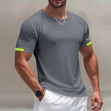 Herren Fitnessshirt Sportliche Hemden Rundhalsausschnitt Kurze Ärmel Alltagstauglich Fitnessstudio Schnelltrocknend Atmungsaktiv Einfarbig Schwarz Weiß Sportkleidung Polyester Sport Outdoor