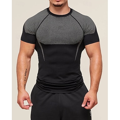 Herren Farbblock Lauf-T-Shirt Kompressionsshirt Laufshirt Sommer Frühling Herbst Kurzarm Schnelltrocknend Kompression Feuchtigkeitsableitend Fitnesstraining Aktives Training Übung Blau Schwarz Grün