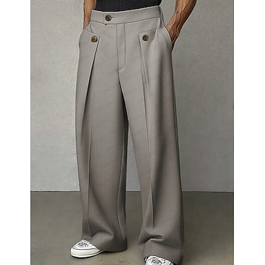 Herren Hose Anzughose Tasche Knöpfe Einfach Komfort Atmungsaktiv Volle Länge Täglich Heim Outdoor Urlaub Mode Schwarz Weiß Unelastisch