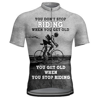Herren Radtrikot Grafik Buchstaben & Zahlen Man hört nicht mit dem Reiten auf, wenn man alt wird. Man wird alt, wenn man mit dem Reiten aufhört. Kurzarm Fahhrad Trikot Oberteil mit 3 Gesäßtaschen