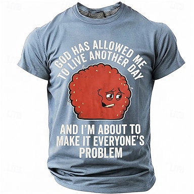 Der Gott der Männer hat mir einen weiteren Tag geschenkt – jedermanns Problem – lustiges, sarkastisches Meme – mürrisches rotes Fleischbällchen-Grafik-T-Shirt – Rundhalsausschnitt – Kurzarm –