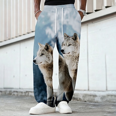 Herren Wolf Tierwelt Mondlicht Jogginghose Hose Freizeithose Mittlere Taille Vintage-Retro Outdoor Jagd Trainieren Elastischer Kordelzug in der Taille Gerade geschnittene Hose mit Taschen Frühling