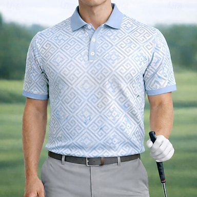 Herren Geometrisch Golf Sport-Poloshirts Kurzarm Polo-Shirts Hemden mit Kragen Lässig Athleisure Knöpfe Sommer Frühling Blau Grün Hellblau
