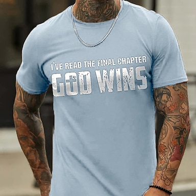 Männer Kurzarm Grafik T-Shirt 'ICH HABE DAS LETZTE KAPITEL GELESEN GOTT GEWINNT' Christlicher Glauben Tee