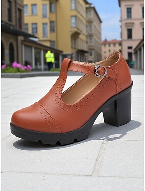 Hellblaue Mary-Jane-Schuhe mit T-Riemen und dickem Absatz für Damen – Plateau-Pumps aus Kunstleder mit runder Zehenpartie und Schnallenriemen für Freizeitkleidung, Büro-Outfits und Frühlings-/Sommer-Events