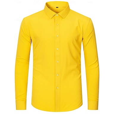 Herren Hemd Kleidhemd Bügelfreies Hemd Knopfhemd Einfach Täglich Geschäft Blau Hellgelb Hellblau Schwarz Langarm Umlegekragen Ganzjahres Bekleidung