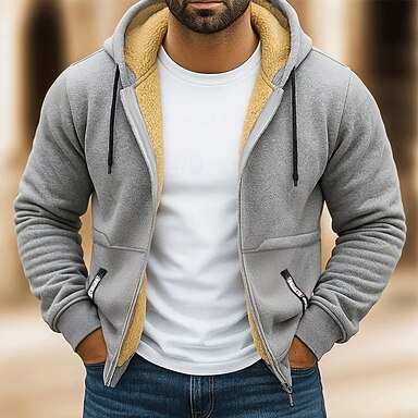 Herren Kapuzensweatshirt Vollreißverschluss-Kapuzensweatshirt Fleece Kapuzensweatshirt Aprikose Schwarz Armeegrün Marineblau Hellgrau Mit Kapuze Einfach Tasche Sport & Outdoor Täglich Ferien Polyester