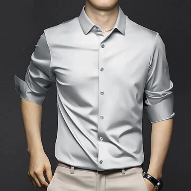 Herren Oberhemd Bügelfreies Hemd Solide / einfarbig Hochzeit Ausgehen Schwarz Weiß Rosa Orange Langarm Umlegekragen Frühling Herbst Bekleidung