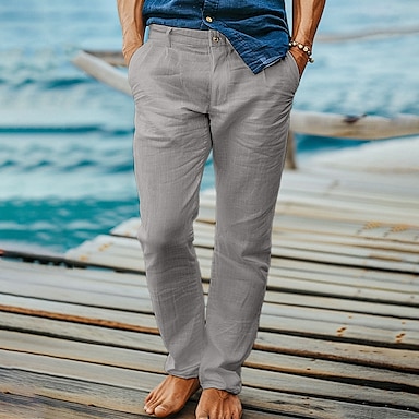 Herren Leinenhosen Hose Anzughose Sommerhose Strandhose Fronttasche Gerader Schnitt Einfach Komfort Atmungsaktiv Volle Länge Formell Geschäft Ferien Mode Basic Schwarz Weiß Unelastisch