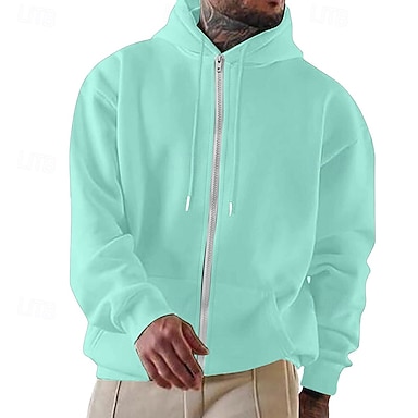 Herren Kapuzensweatshirt Vollreißverschluss-Kapuzensweatshirt Pullover Kapuzensweatshirt Fleece Kapuzensweatshirt Weinrot Schwarz Hellgrün Rosa Armeegrün Mit Kapuze Einfach Reißverschluss Sport