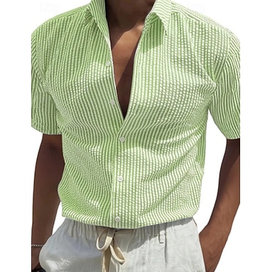 Herren Durchgeknöpft Hemd Freizeithemd Seersucker-Shirt Schwarz Gelb Hellgrün Rosa Purpur Kurzarm Gestreift Revers Lässig Täglich Knöpfe Bekleidung Streetwear Lässig