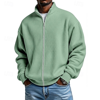 Herren Sweatshirt Waffel-Sweatshirt Pullover Kapuzensweatshirt Pullover Sweatshirt mit durchgehendem Reißverschluss Aprikose Schwarz Weiß Hellgrün Armeegrün Stehkragen Einfach Strukturiert Lässig