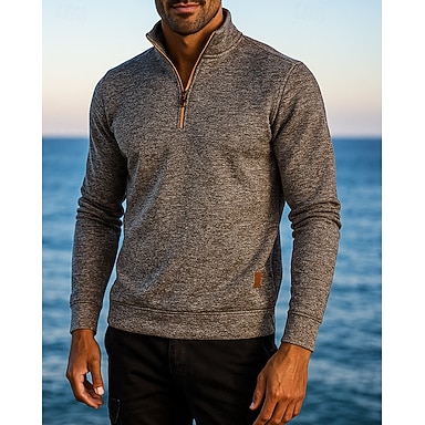 Herren-Polo-Pullover aus Wildlederimitat mit Reißverschluss, langärmlig, modisch, einfarbig, für Frühling und Herbst, ganzjährig, bequeme Passform, in Schwarz, Rosa, Olivgrün, Marineblau und Blau erhältlich.