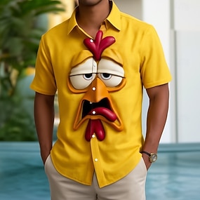 Herren Hahn 3D Zeichentrick Lächelndes Gesicht Hemd Knopfhemd Kurzarm Lustig Ferien Sommer Frühling Umlegekragen 3D-Druck Hemden mit Kragen Orange Gelb Gelb Orange