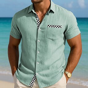 Herren Hemd Leinenhemd Sommerhemd Strandbekleidung Einfarbig Lässig Urlaub Blau Marineblau Himmelblau Aprikose Kurzarm Hemdkragen Sommer Frühling Bekleidung