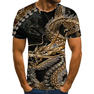 Herren Unisex Drache Grafikdrucke T Shirt T-Shirt Kurzarm T-Shirt 3D-Druck Rundhals Hemd Mode Designer Basic Lässig Täglich Ferien Braun Frühling & Sommer Bekleidung Übergröße S M L XL XXL 3XL