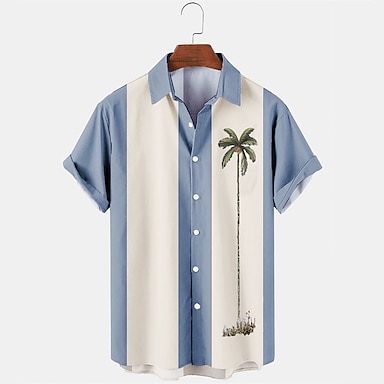 Herren Farbblock Kokosnussbaum Tropische Pflanzen Hemd Hawaiihemd Sommerhemd Bowling-Shirt Kurzarm Hemd Umlegekragen Modisch 1950s Freizeit Urlaub Strasse Ausgehen Schwarz Rosa Blau S M L
