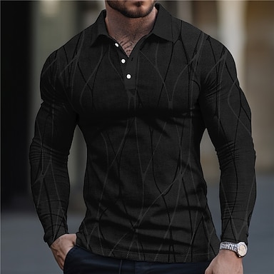 Herren Geometrisch Poloshirts Golfshirt Langarm Polo-Shirts Hemden mit Kragen Business-Casual Arbeitskleidung Formelle Kleidung Festivalkleidung 3D-Druck Knöpfe Herbst Winter Schwarz Weiß Marineblau