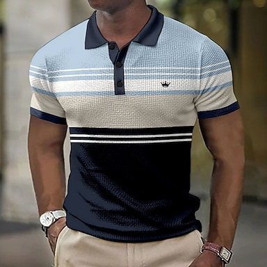 Herren Gestreift Waffel-Poloshirts Golfshirt Kurzarm Polo-Shirts Hemden mit Kragen Business-Casual Arbeitskleidung Formelle Kleidung Festivalkleidung 3D-Druck Knöpfe Blau Rosa Grün