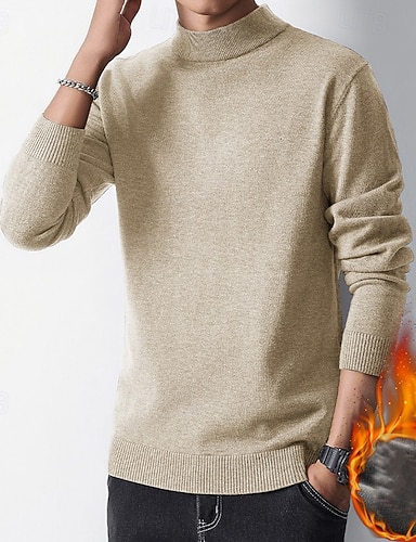 Herren Pullover Strickpullover Gerippt Stricken Standard Strick Glatt Stehkragen Modisch Brautkleider schlicht Freizeitskleidung Verabredung Bekleidung Herbst Winter Kamel Schwarz M L XL