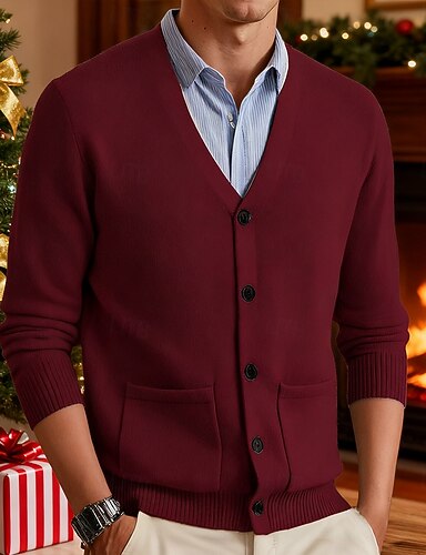 Herren Weihnachtspullover Strickjacke Kurzer Pullover Strickpullover Gerippt Stricken Normale Oberteile Tasche Einfach V Ausschnitt Mode Klassisch Urlaub Alltagskleidung Bekleidung Herbst Winter