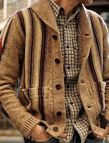 Männlich Strickjacke Pullover Jacke Grobstricken Stricken Standard Jacquard Schalrevers Freizeitskleidung Bekleidung Herbst Winter Kaki M L XL