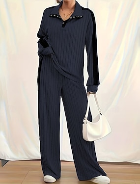 Damen Aktiv Mode Bluse Hosen-Sets Langarm Hemdkragen Farbblock Patchwork Urlaub Alltagskleidung Armeegrün Königsblau Herbst Normale Passform