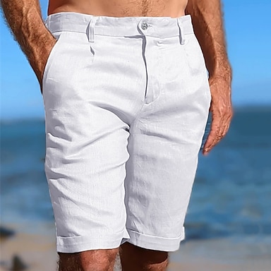 Herren Shorts Leinenshorts Schicke Shorts Sommershorts Strandshorts Einfach Weich Atmungsaktiv Kurz Lässig Täglich Ferien Mode Streetwear Schwarz Beige Unelastisch