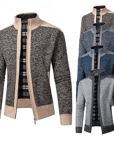 Herren Pullover Strickjacke Reißverschluss-Pullover Gerippt Stricken Normale Oberteile Reißverschluss Patchwork Einfach Stehkragen Urlaub Mode Lässig Alltagskleidung Bekleidung Frühling & Herbst