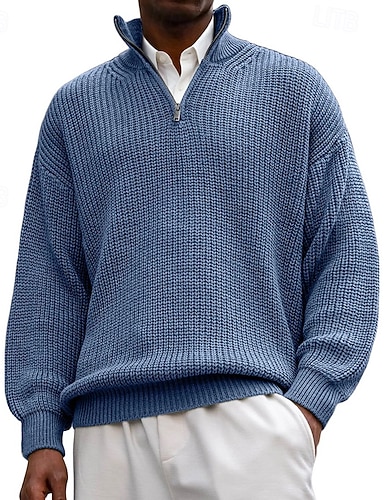 Herren Pullover Pullover mit Viertelreißverschluss Strickpullover Gerippt Stricken Normale Oberteile Gestrickt Fleece Einfach Halber Reißverschluss Mode Lässig Urlaub Alltagskleidung Bekleidung