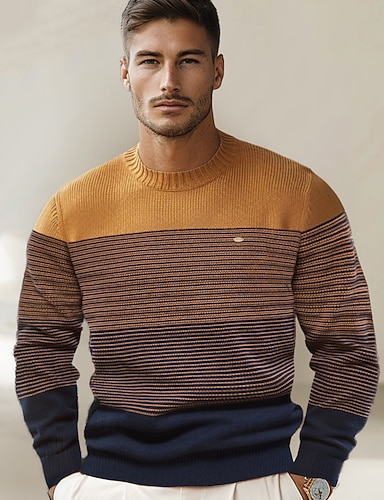 Herren Pullover Stricken Ombre Rundhalsausschnitt Strickware Elegant Weihnachten Outdoor Bekleidung Herbst Winter Dunkelgrün Orange S M L