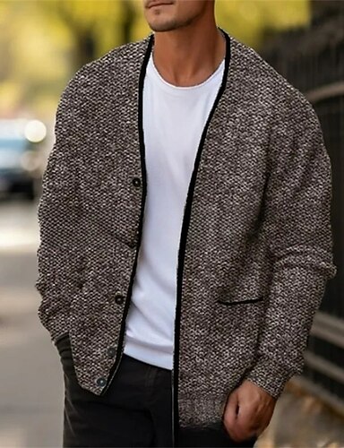 Herren Strickjacke Kleid Pullover Strickpullover Gerippt Stricken Standard Knopf hoch Seitentaschen Feste Farbe V Ausschnitt Modisch Klassisch Freizeitskleidung Verabredung Bekleidung Herbst Winter