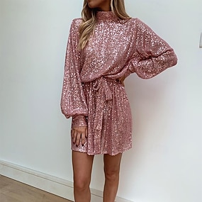 Damen Minikleid Freizeitkleid Cocktailkleid Elegant Mode Modern Täglich Abendgesellschaft Wochenende Normale Passform Einfach Langarm Stehkragen Silber Weiß Rosa Gold Frühling Herbst