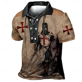 Herren Tempelritter Poloshirts Kurzarm Polo-Shirts Revers Vintage Lässig Streetwear Alltagskleidung 3D-Druck Atmungsaktives Gewebe Frühling & Sommer Frühling Blau Braun Grün