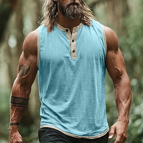 Herren Tank Top Weste Unterhemd Ärmelloses Shirt Ärmellos Henley-Kragen Henley Sommer Frühling Einfach Mode Designer Basic Knöpfe Lässig Urlaub Straße Schwarz Rosa Marineblau Top T-Shirt für Herren
