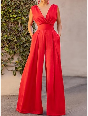 Damen Normal Overall Elegant Einfarbig Ärmellos Weites Bein V Ausschnitt Schnürung Tasche Täglich Heim Normale Passform Schwarz Weiß Rote Sommer