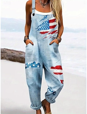 Damen Latzhose Aktiv Grafik Ärmellos Druck Täglich Urlaub Lässiger Schnitt Blau Hellgrün Grün Sommer