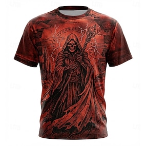 Herren Sensenmann 3D T Shirt Kurzarm T-Shirt 3D-Druck Rundhalsausschnitt Hemd Übertrieben Designer Horror Party Straße Ferien Gelb Rote Purpur Sommer Frühling Bekleidung S M L XL XXL XXXL
