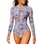 Damen Anti UV Shirt Badeanzug mit Blumenmuster Badeanzug Bedruckt Reißverschluss Boyleg Ultraleicht (UL) UV Schutz Elastisch Langarm Bademode Surfen Schnorcheln Frühling